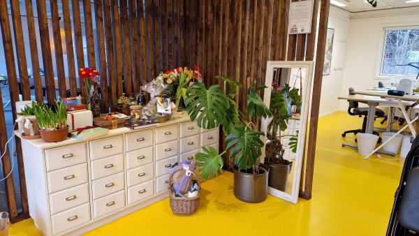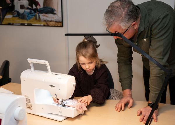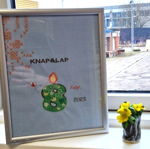8. februar 2025 åbnede Knap & Lap. Det blev fejret hele dagen. Åbent hus om eftermiddagen var velbesøgt. Her blev der testet symaskiner, snakket og ikke mindst spist kage! Louise (LUV) havde været en stor hjælp og lavet små sykits til nøglesnor, coasters eller scrunchies. Og meget af hendes aflagte stof ligger nu og pynter på hylderne og er blevet til genbrugsguld.