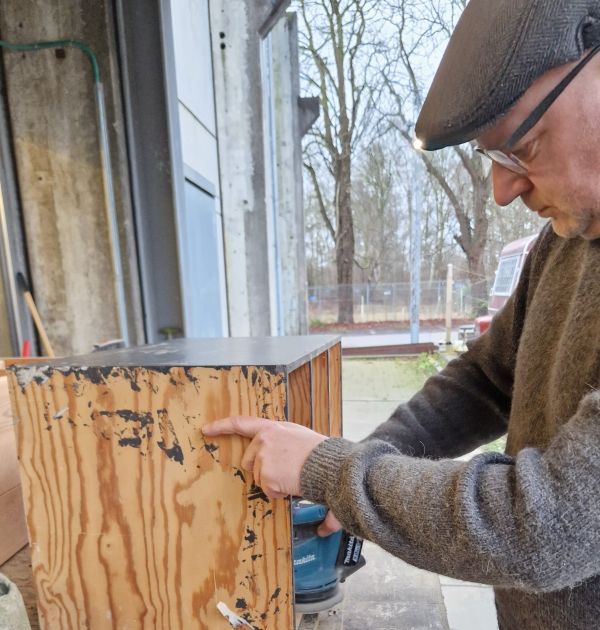 Min plan var at alle møbler skulle være genbrug. Det lykkedes næsten. TDC havde en kælder fuld af genbrugsmøbler – en skattekiste.