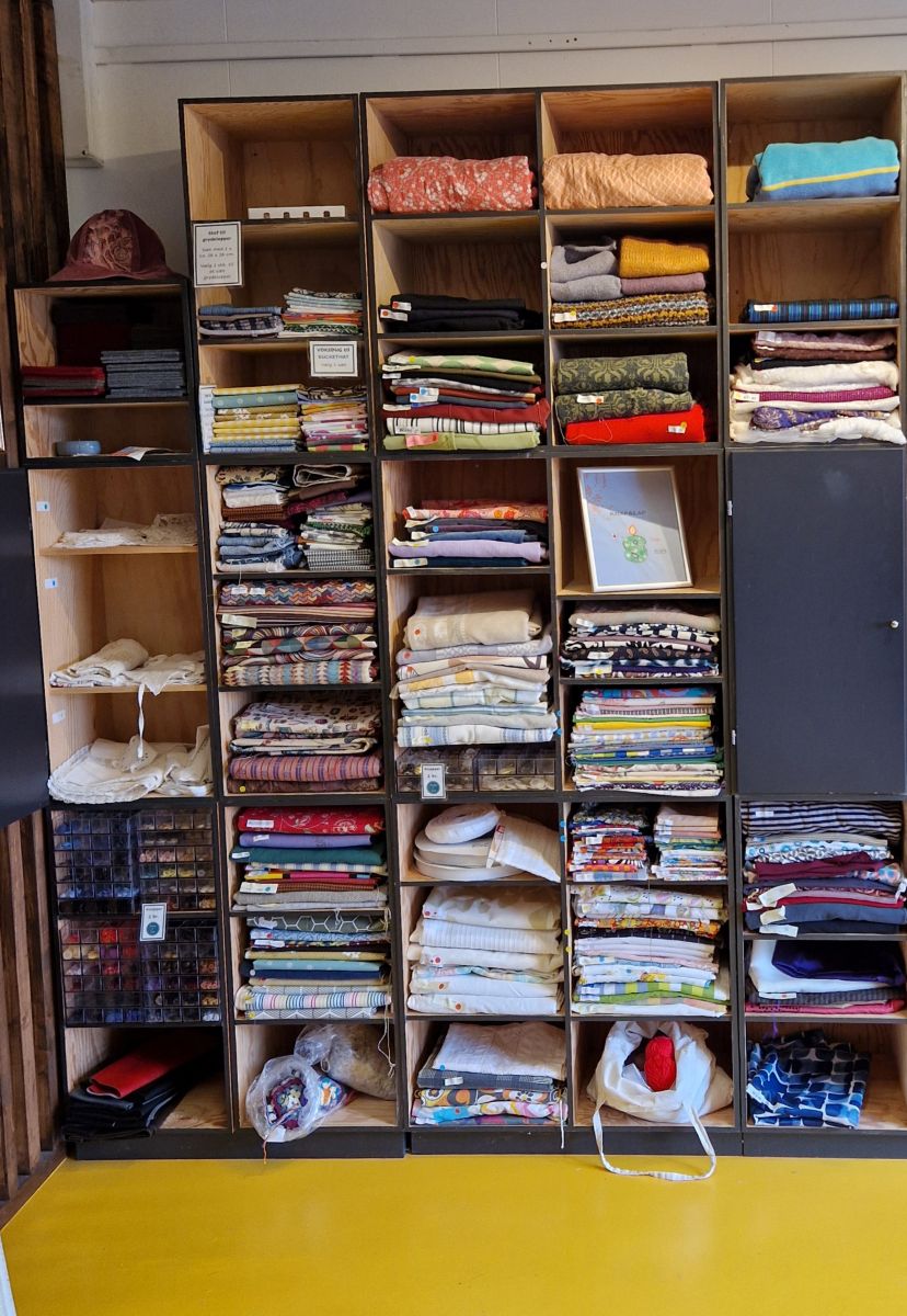 I Knap & Lap kan du købe det meste som du har brug for til et sy-projekt. Her er et lille udvalg af det meste; tråd, lynlåse, bånd, KNAPPER ikke mindst. Derudover er her en fuld reol med reste- eller genbrugsstof i store eller mindre stykker.